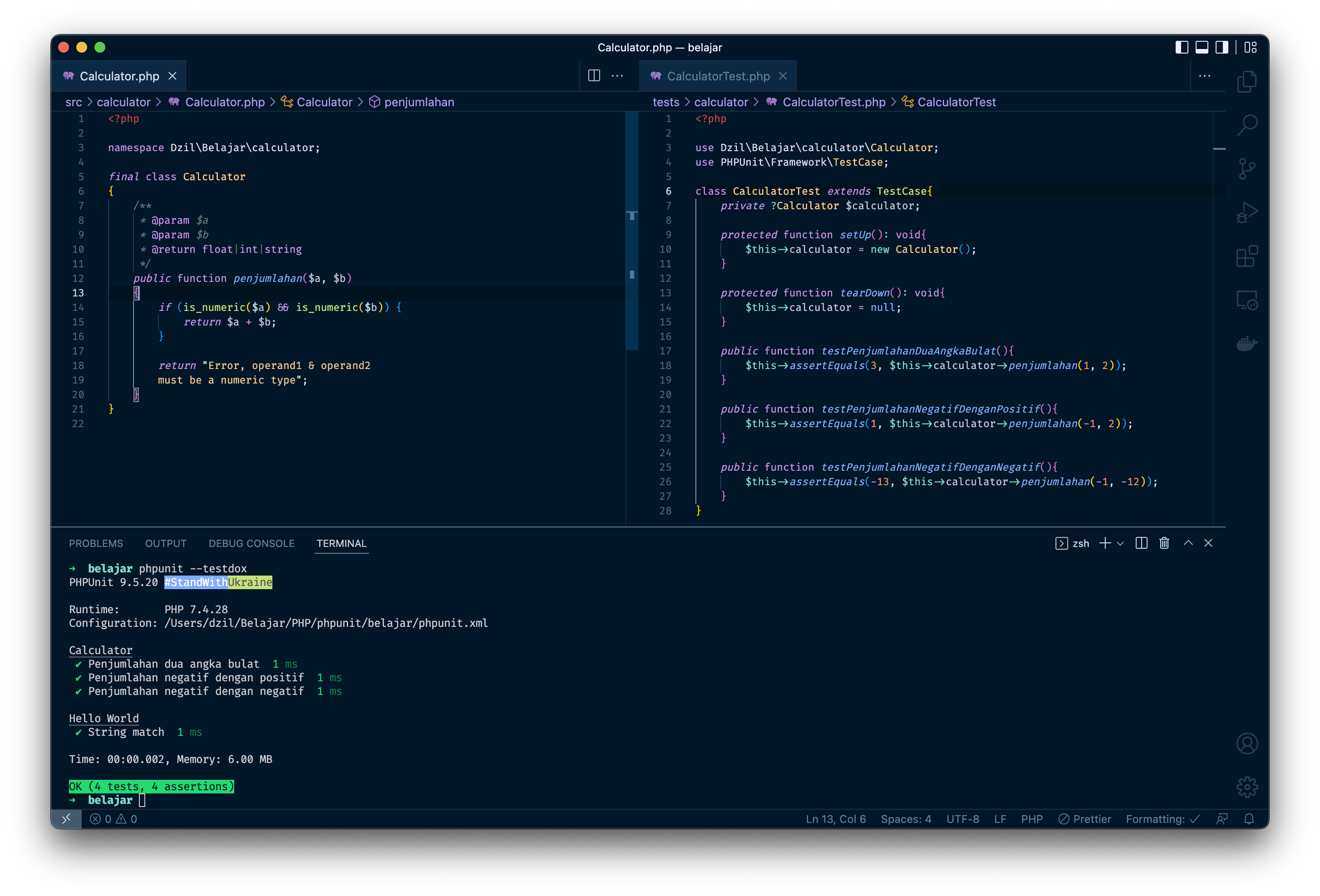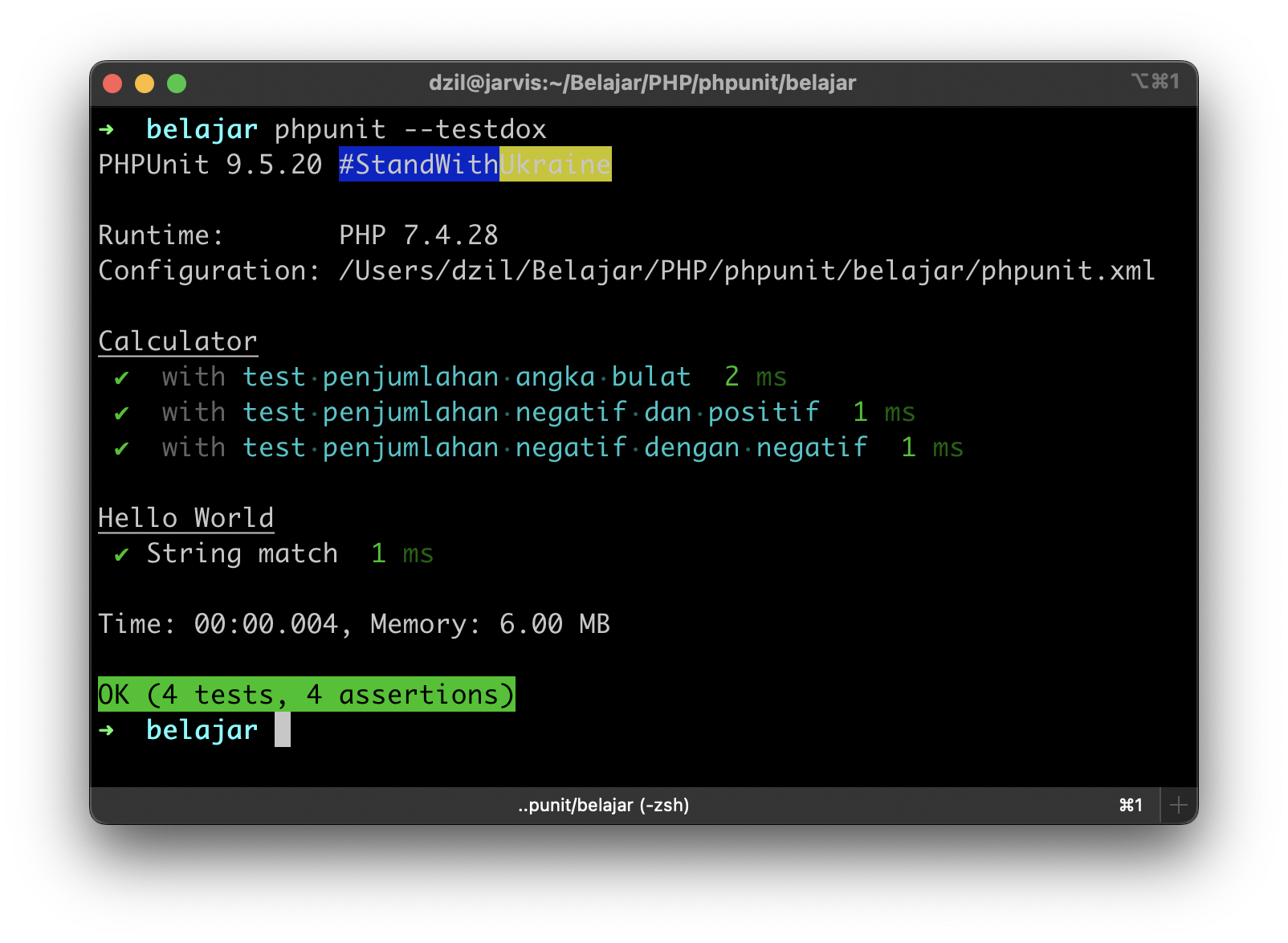 Running dengan PHPUnit :